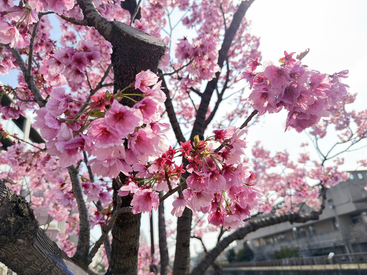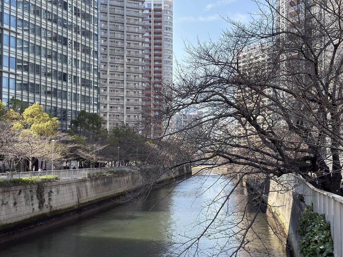 目黒川沿いでも小さな蕾が散見したため、今後の景観の変化にも心を躍らせます。