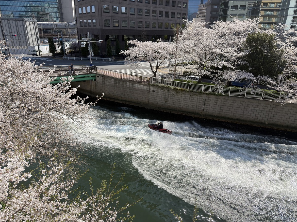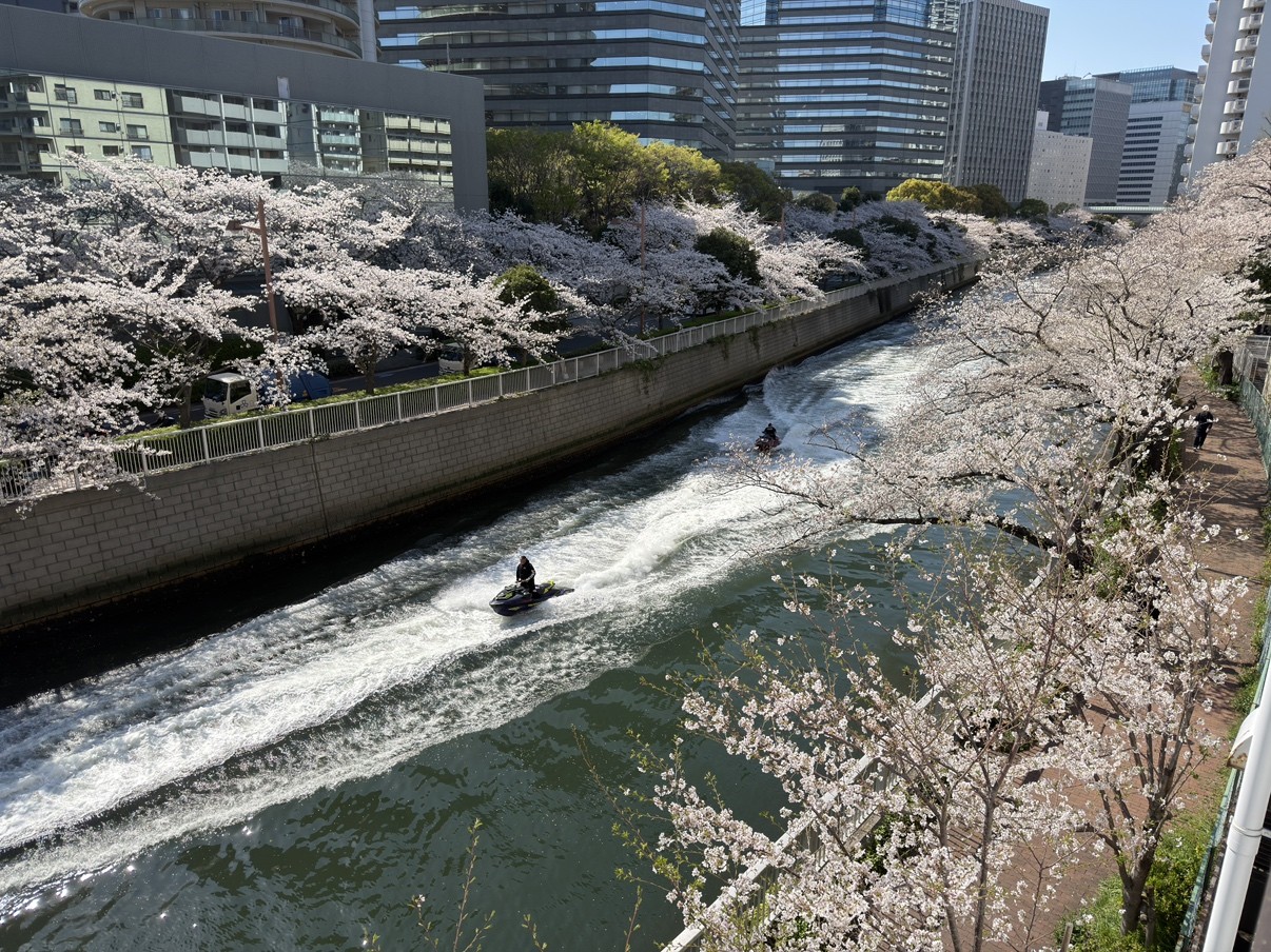 桜シーズン最後の週末になろうかというタイミングで水上バイクも見られました。
